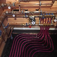 — от используемого оборудования: гидравлические разделители, коллекторы, циркуляционные насосы,смесительные узлы, сервоприводы, термостаты, материал труб.